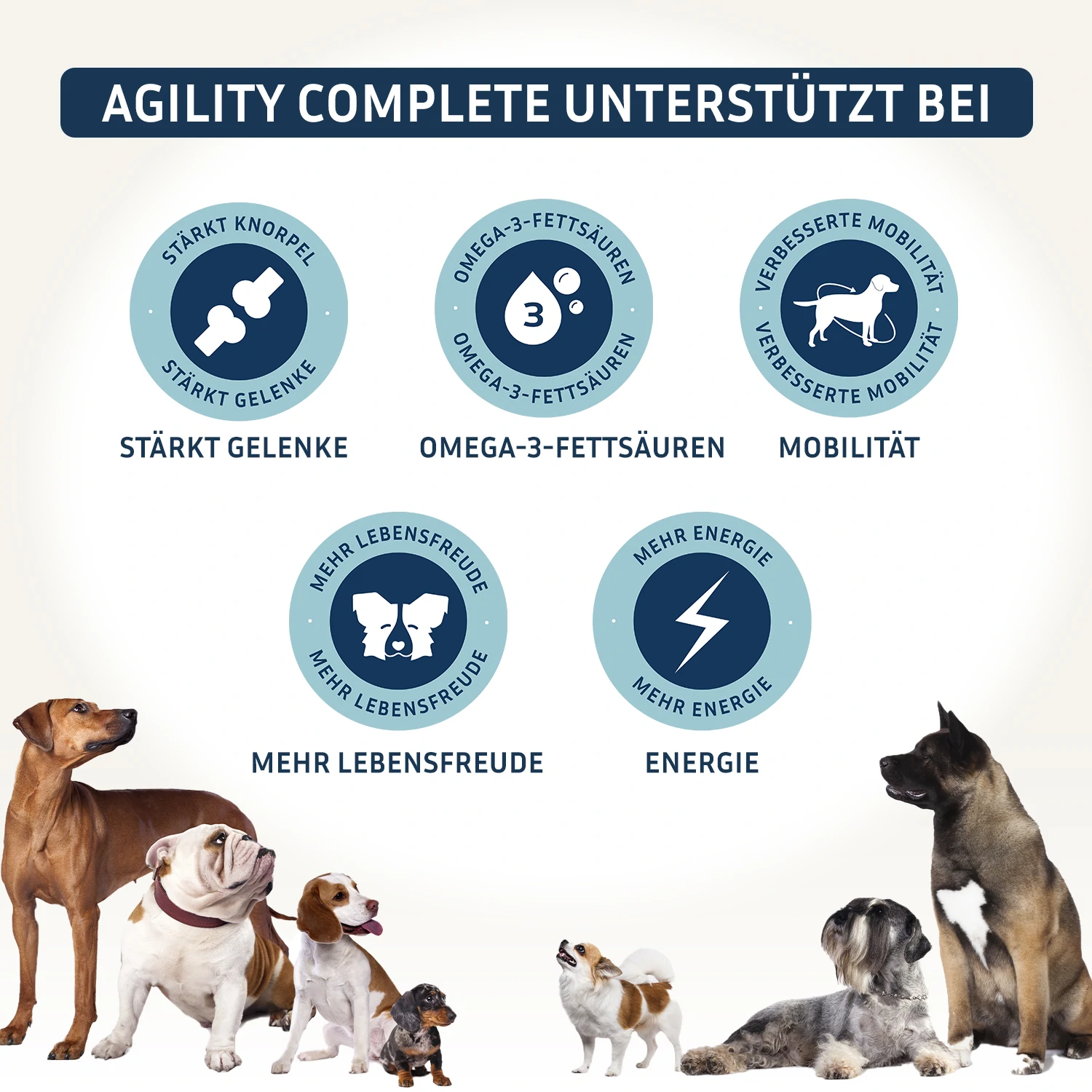 PROFITIEREN SIE VON DEN VIELEN VORTEILEN FÜR DIE AGILITÄT, BEWEGLICHKEIT UND LEBENSFREUDE IHRES VIERBEINERS: